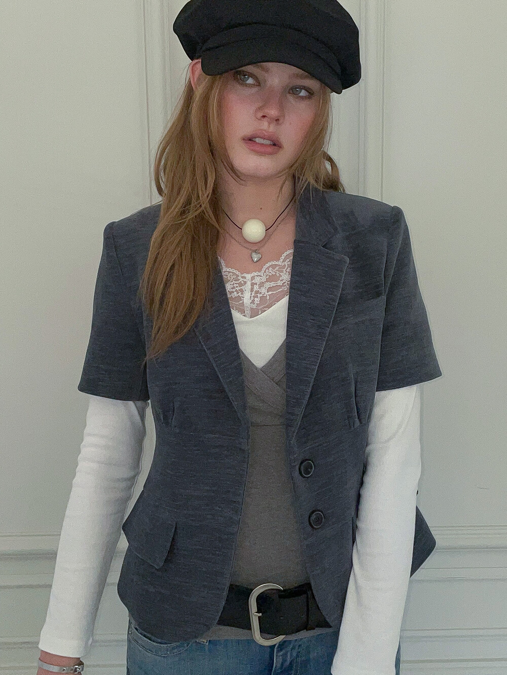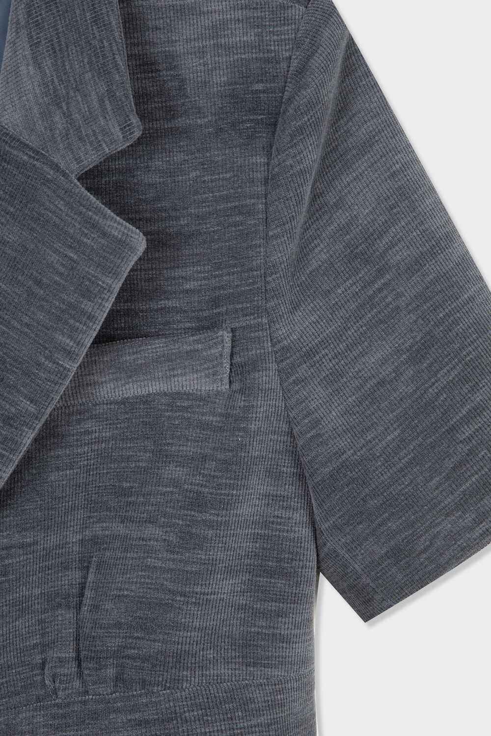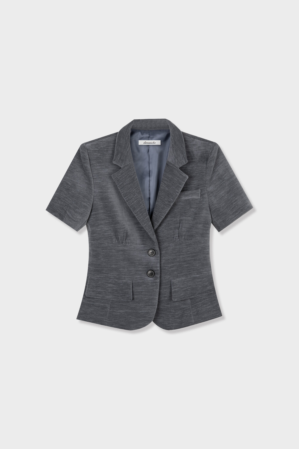 빈티지한 색감과 구조적인 실루엣이 돋보이는 반팔 자켓입니다. 탄탄하고 두께감 있는 소재를 사용하여 형태를 유지하며 가슴 밑단의 셔링 디테일이 입체감 있는 볼륨을 만들어내어 더욱 페미닌하고 감각적인 실루엣을 완성합니다. 특히 허리 부분의 패널 디테일은 빈티지한 감성을 더함과 동시에 바디 라인을 슬림하게 잡아주는 역할을 합니다. 반팔 기장으로 셔츠나 슬리브리스 등 다양한 아이템과 함께 레이어드가 가능한 아이템입니다.