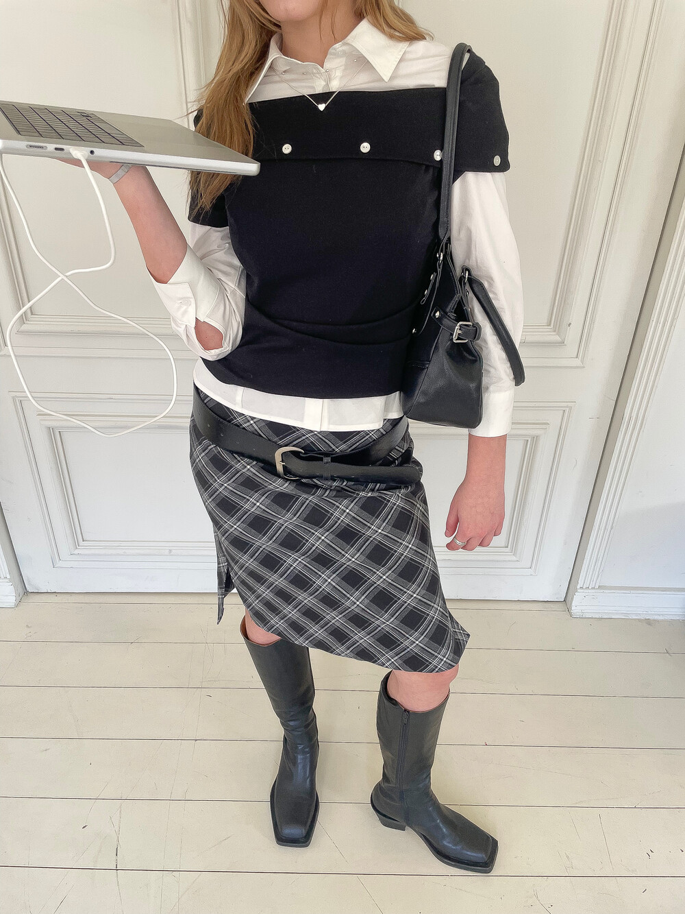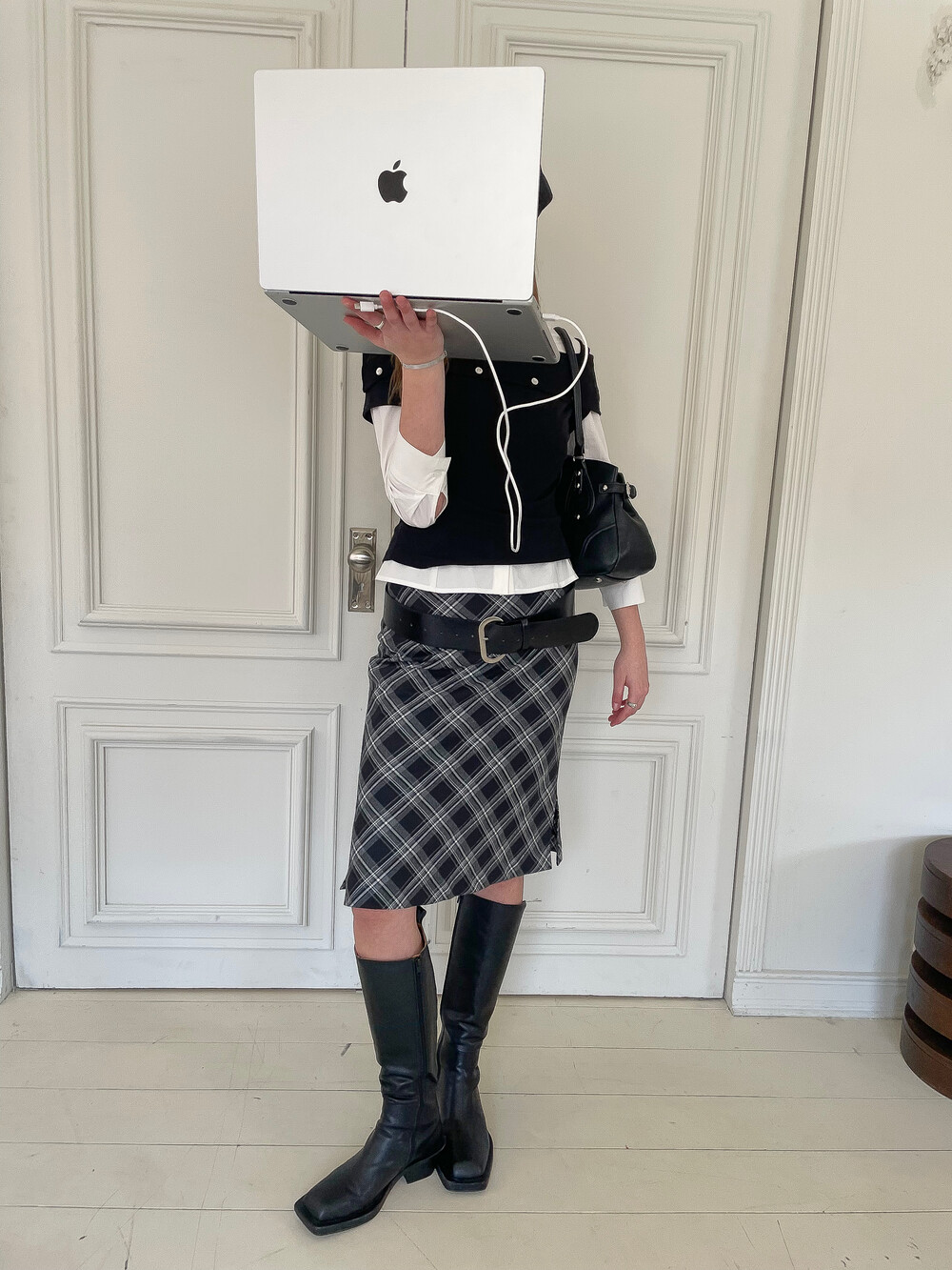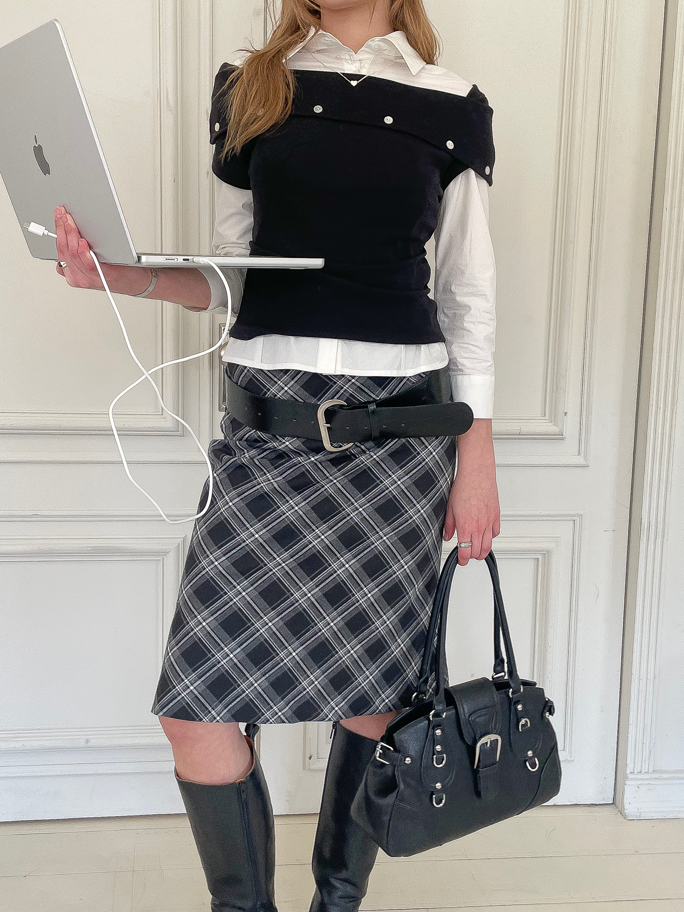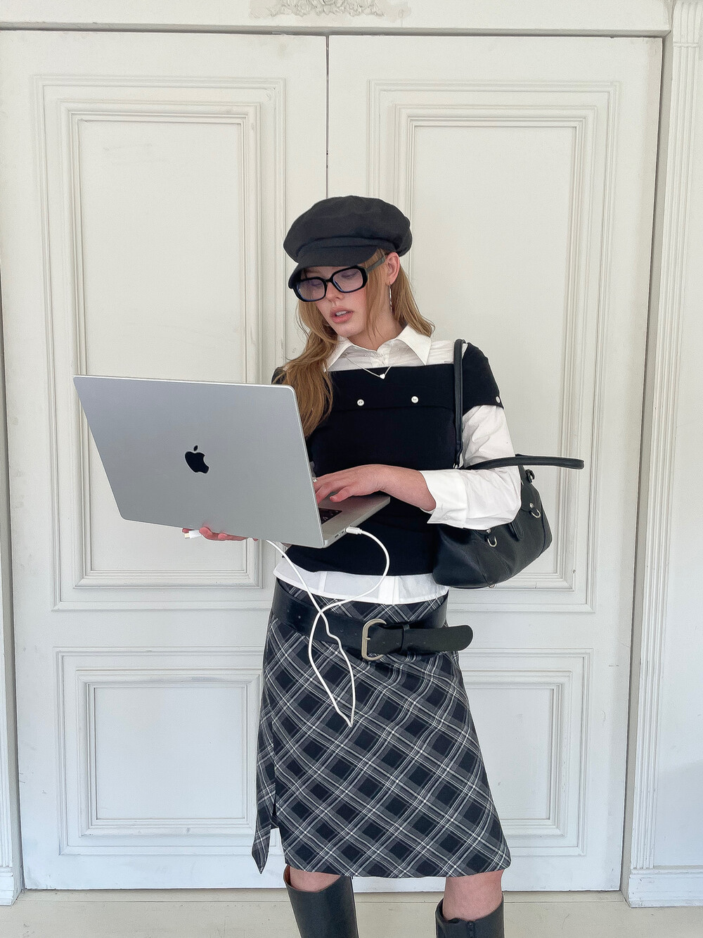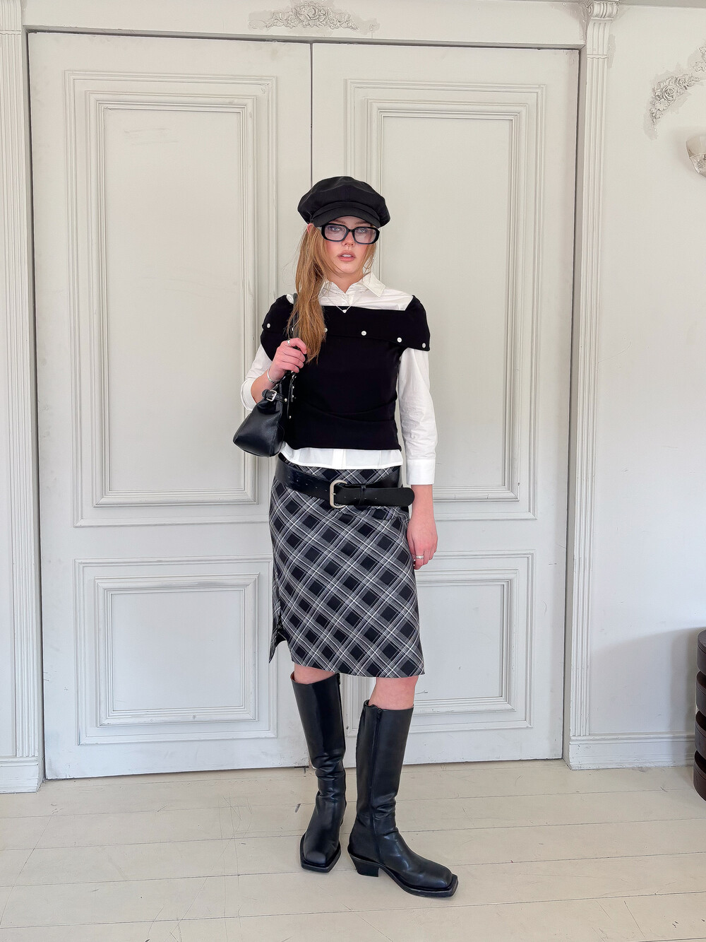 [3/15 예약배송] Check Midi Skirt (black/white)