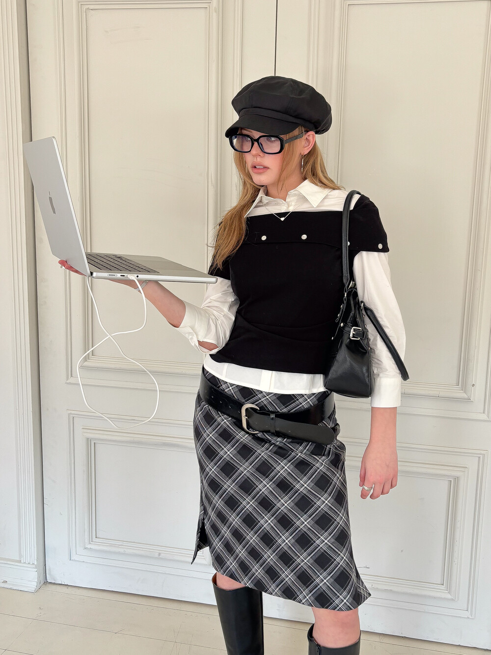 빈티지한 색감이 돋보이는 체크 미디 스커트입니다. 탄탄한 두께감으로 형태가 흐트러지지 않으며, 자연스럽게 떨어지는 미디 길이가 안정감 있는 실루엣을 완성합니다. 클래식한 블랙&화이트 체크 패턴이 매력적인 포인트가 되어 다양한 상의와 손쉽게 매치할 수 있는 아이템입니다.