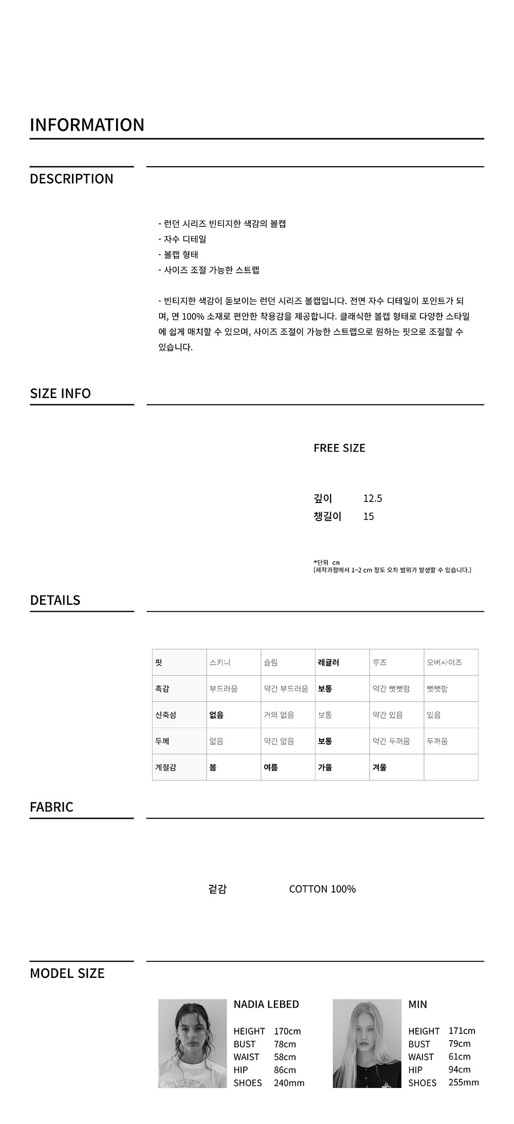 - 교환 및 반품 상품은 착용하지 않고 손상된 부분이 없어야 하며 상품 택을 제거하지 않고 수령한 상태 그대로 보내주셔야 합니다.