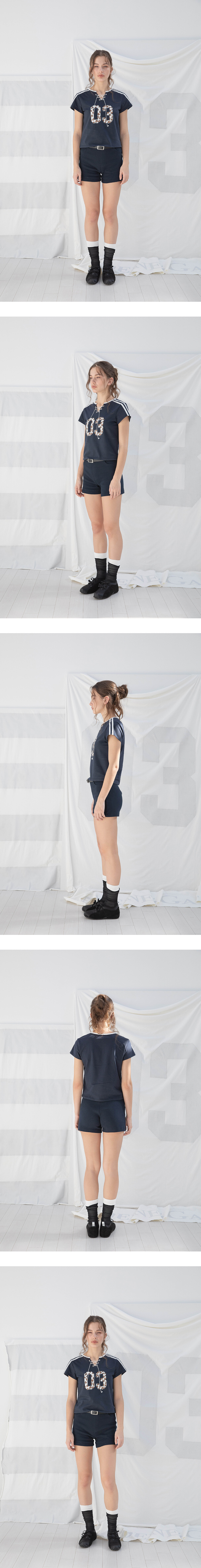SPORTY LACE-UP T-SHIRT (NAVY)