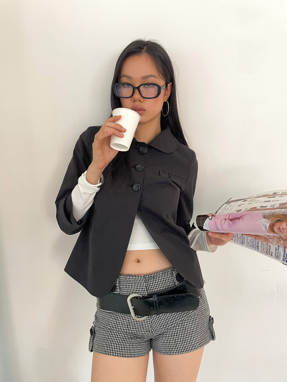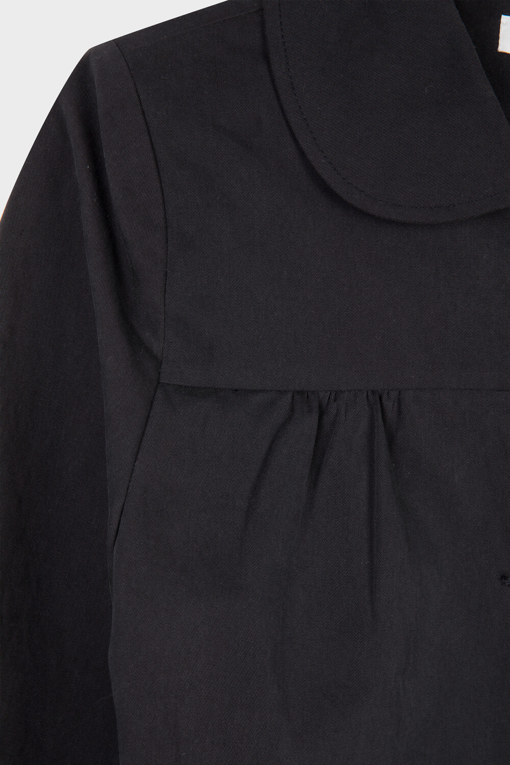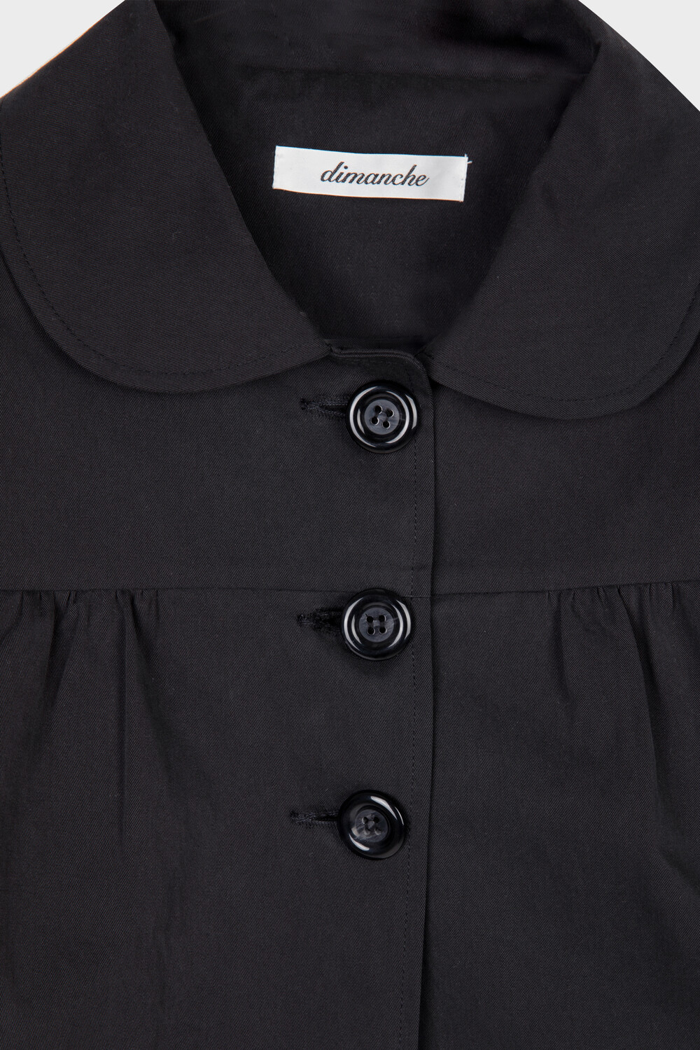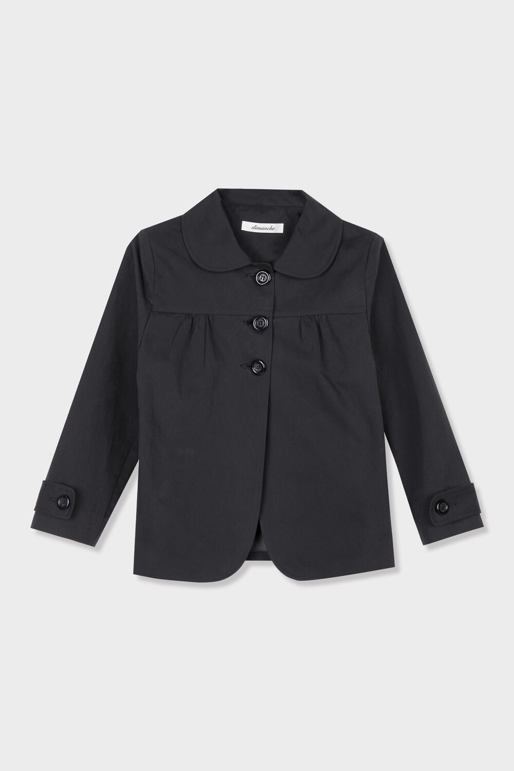 가볍고 탄탄한 소재로 제작된 스프링 자켓입니다. 둥글게 떨어지는 라운드 카라와 프론트 3버튼 클로징이 특징이며 가슴 절개선 아래 셔링 디테일을 더해 자연스러운 볼륨을 만듭니다.