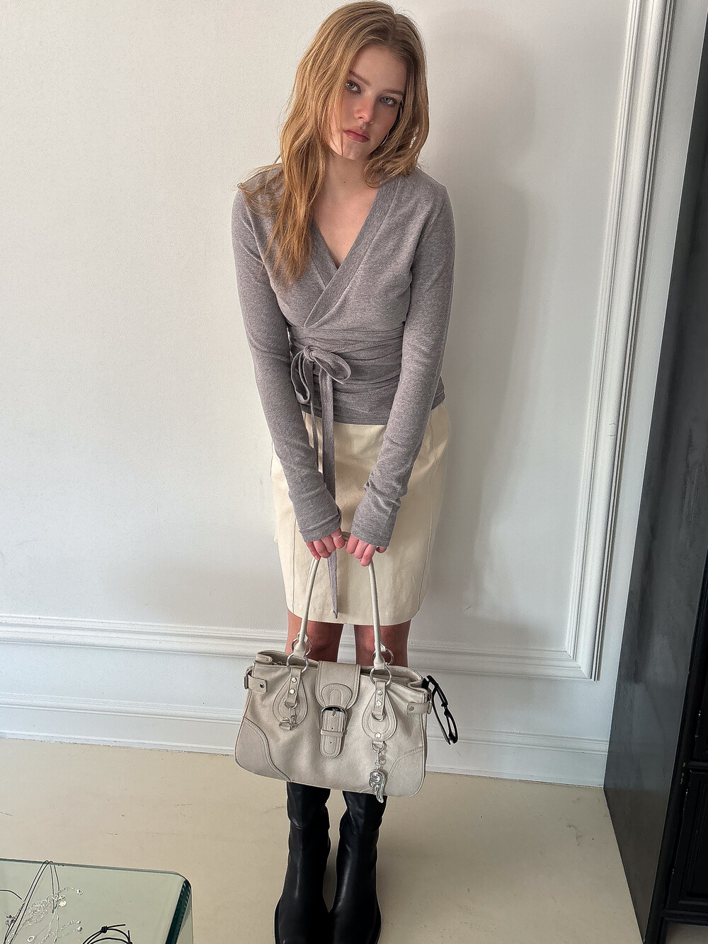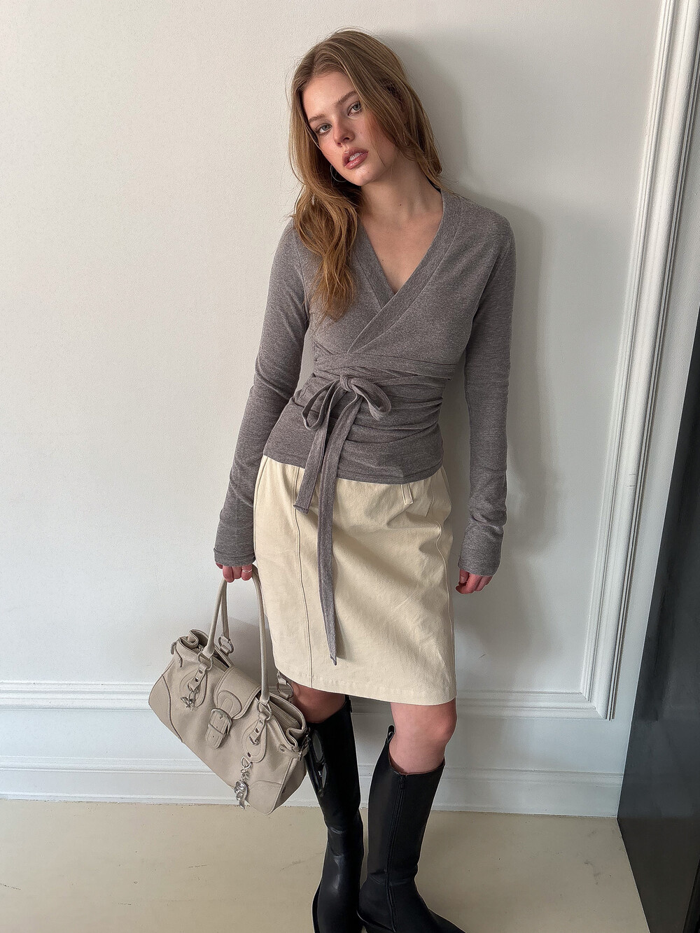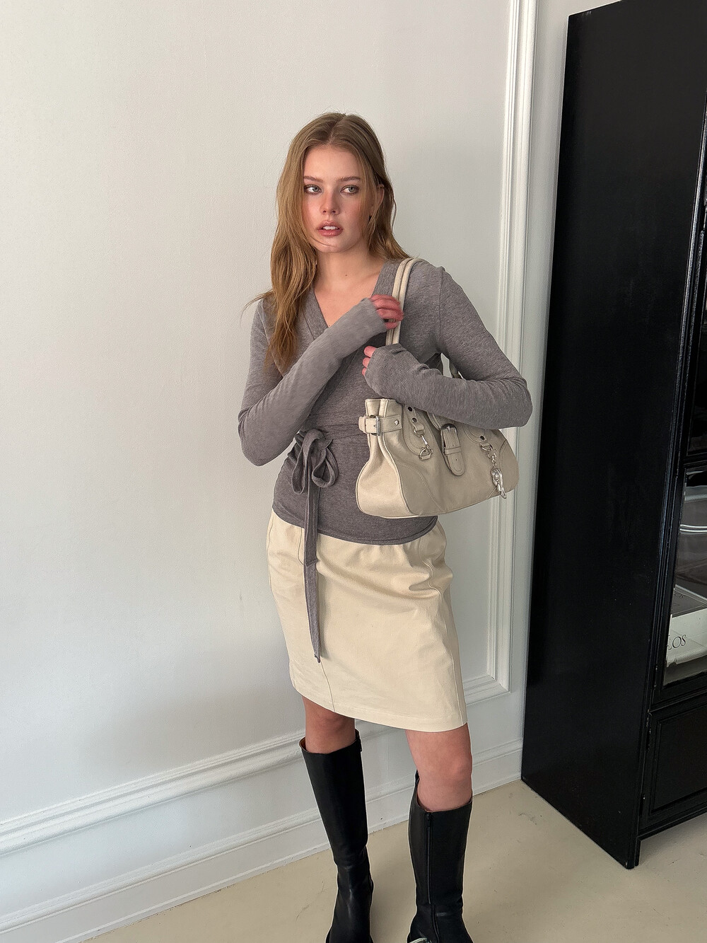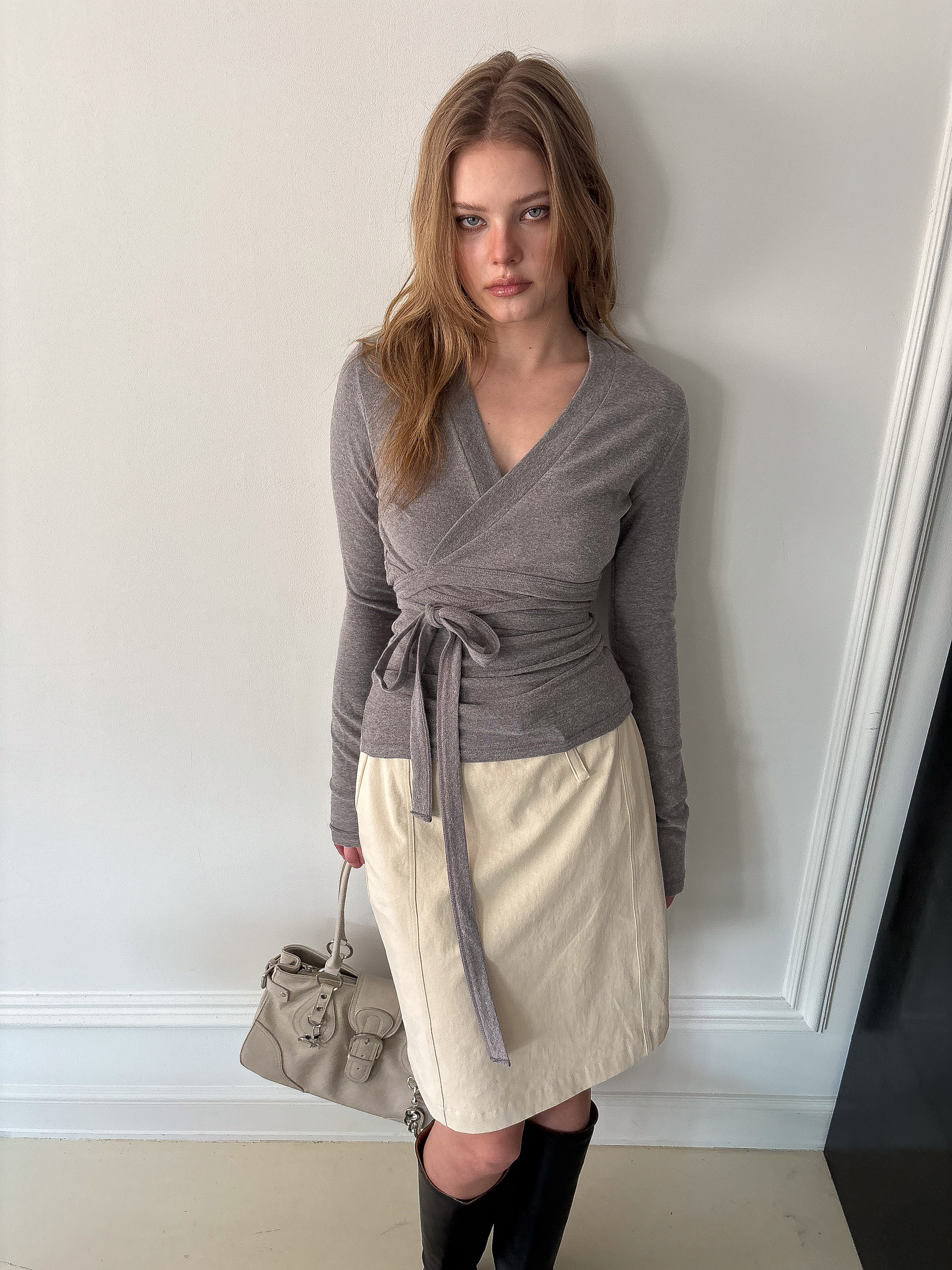 부드럽고 유연한 텍스처가 돋보이는 랩 가디건과 슬리브리스 탑으로 구성된 셋업입니다. 바디 라인을 자연스럽게 감싸는 슬림한 실루엣으로 여성스러운 분위기를 연출하며 허리 부분의 랩 구조와 리본 스트랩 디테일이 포인트가 됩니다. 슬리브리스 탑은 단독 착용은 물론 셔츠나 다양한 아이템 위에 레이어드하여 스타일링할 수 있어 활용도가 높습니다. 두 아이템을 함께 매치하면 완성도 있는 셋업 스타일을, 각각 단품으로도 다양한 코디에 활용할 수 있는 아이템입니다.